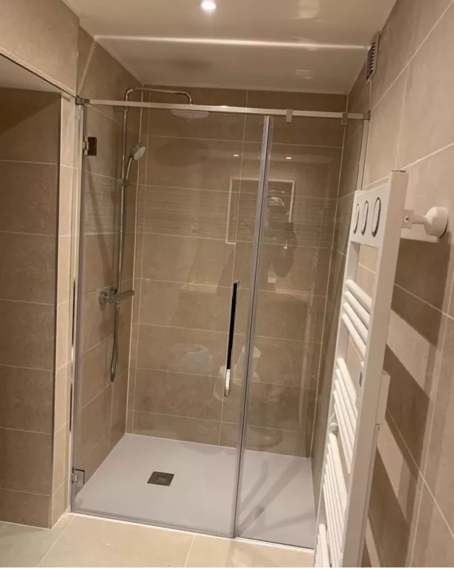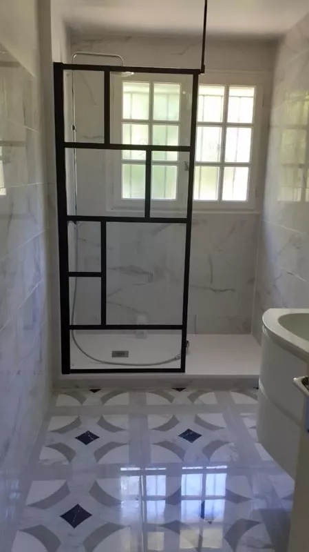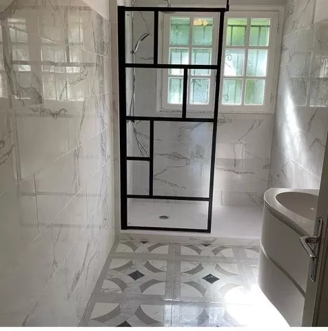 Carrelage imitation carreaux de ciment / receveur de douche/ paroi de douche